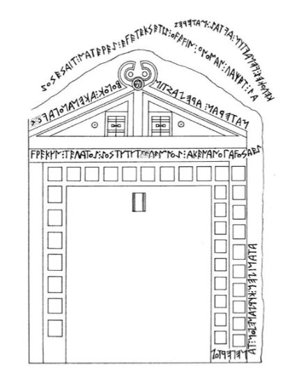 Script XF Broken Monument, facade No. 33, Midas City (Image: "Phrygian Rock Cut Shrines," Susanne Berndt-Ersöz, after Gabriel)