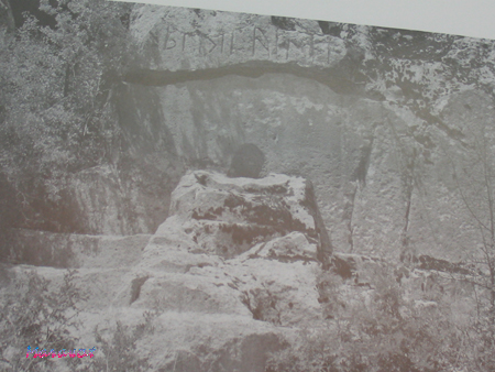 Of interest is the fact that all of the ancients agree that the worship of Cybele originated in Phrygia (Some reports attribute the cult beginning in Samothrace and then moving to Phrygia) and her worship involved frenzied dances accompanied by noisy tamborines and kettledrums, self-castration and the slashing of the arms with knives. Her worship was in mountainous, natural rock structures, groomed with pine forests, with a cave nearby and springs. She is described as a terrible goddess that must be appeased and envisioned driving a chariot pulled by lions or seated on a rock holding grain, a poppy and a cornocopia, sybolizing abundance. She is also depicted as a water bearer. Within the natural rock niches were placed, along with her carved, stone image, wooden images of other gods. One of the original images made of her, by the Argonauts, was that carved from a large vine growing on a tree on Mt. Didymus. Her worship is described relative to her sacred places, where she was conceived by the sleeping Zeus, where her consort, Attis was conceived, and where Attis was buried. For instance [see thoi.com]: